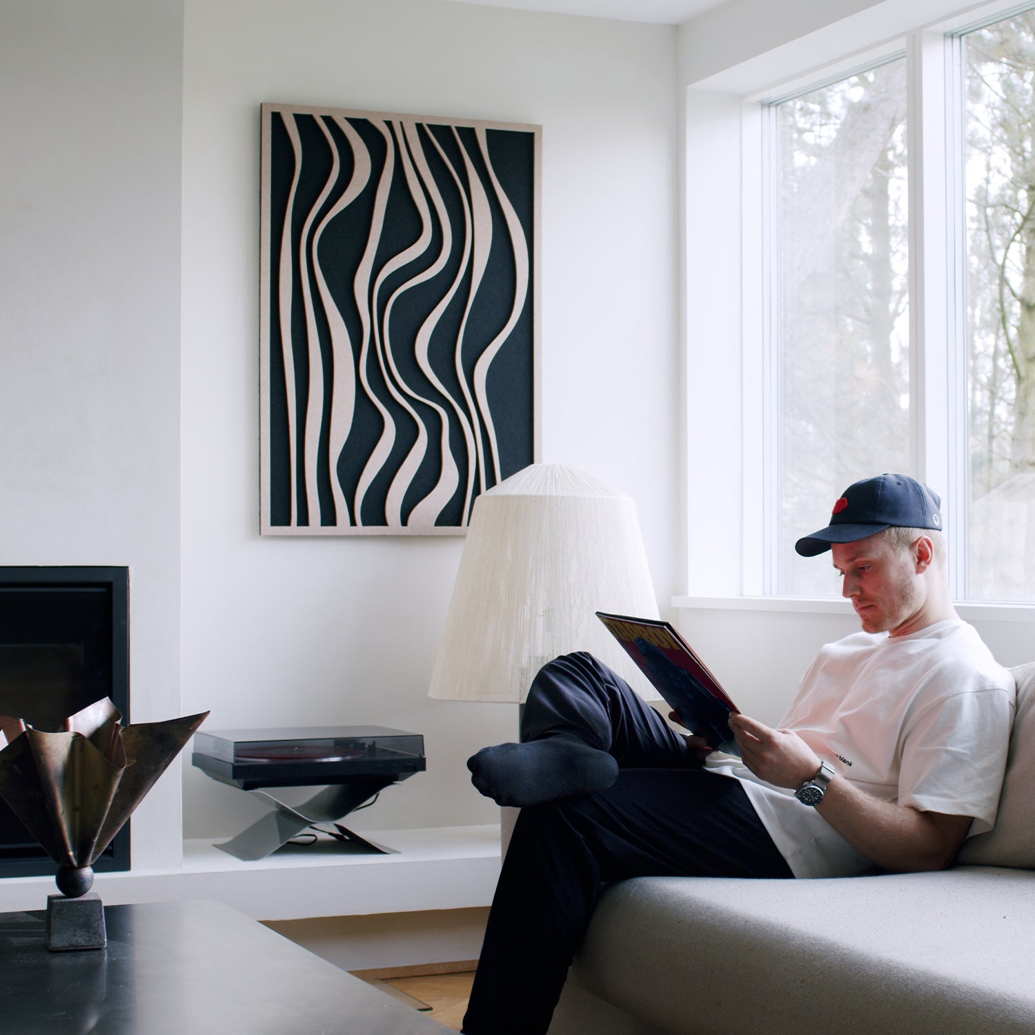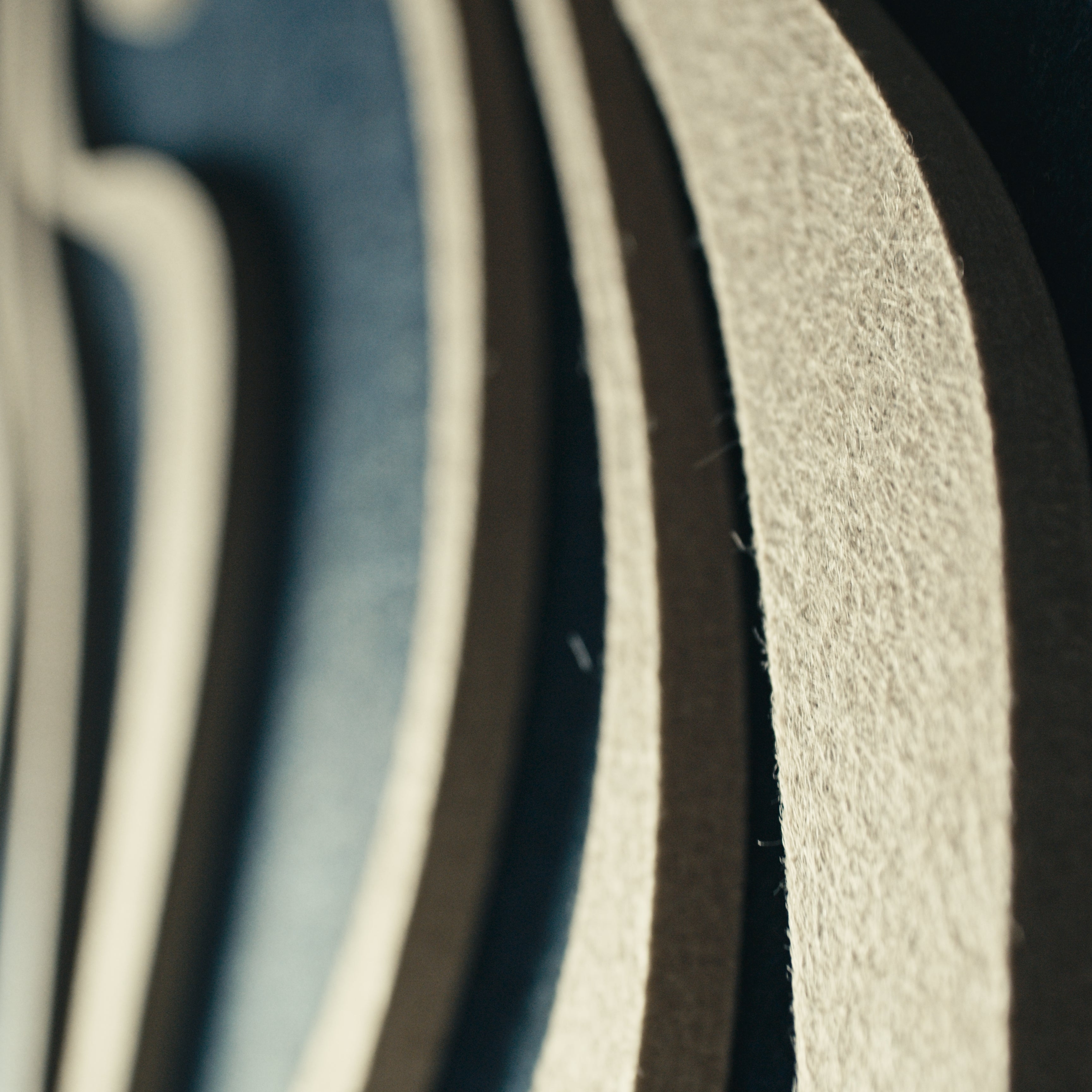Our original Arturel artworks are made from recycled materials and ocean bound plastic. The material is then transformed into felt, from which we create our acoustic artworks.