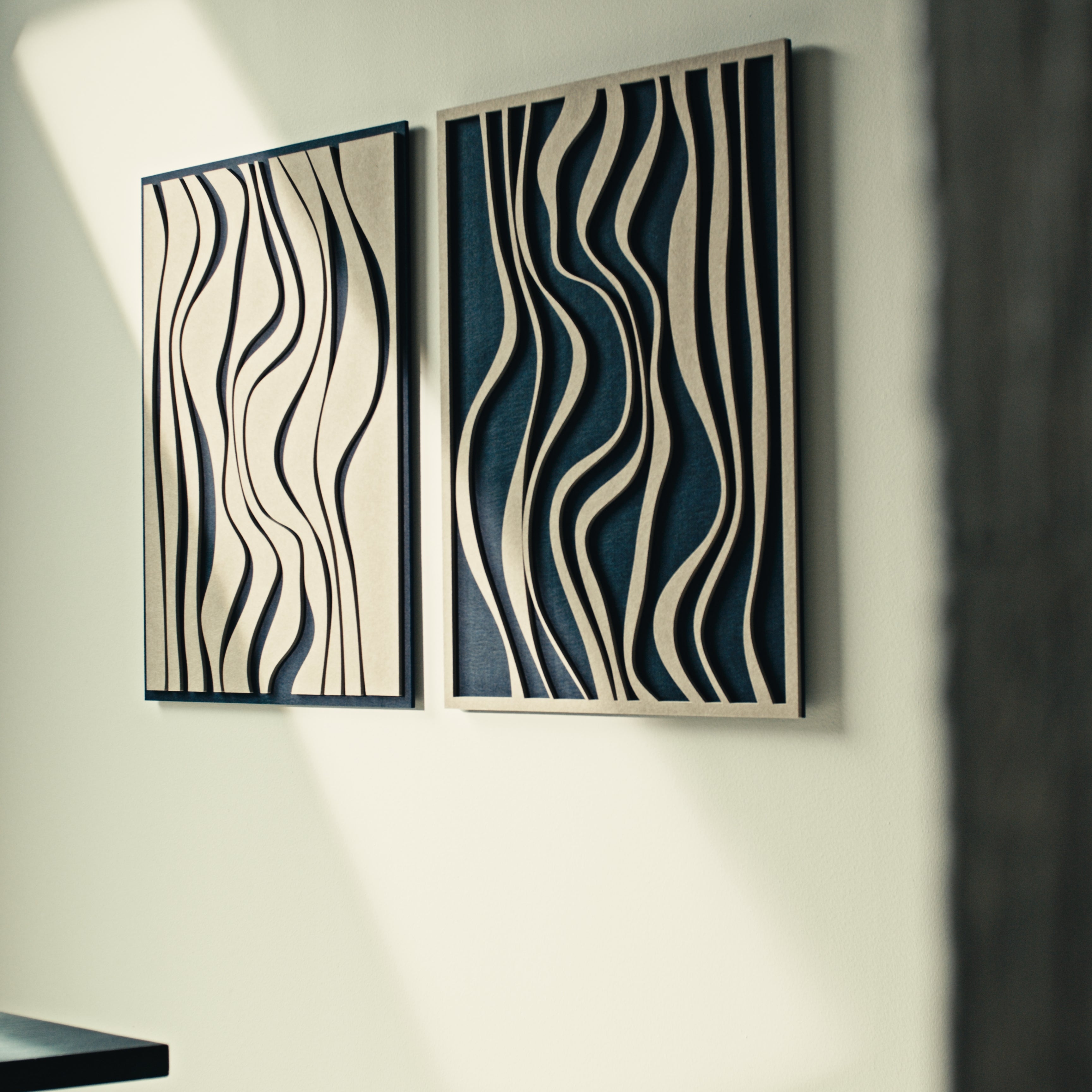Our acoustic artworks possess sound-absorbing properties, which helps to ensure a better indoor environment by improving the acoustics in any given space.
